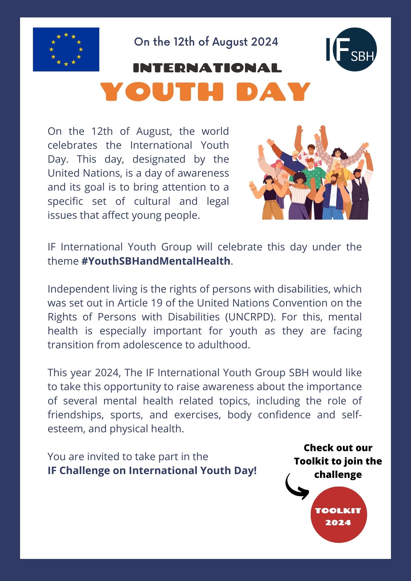 This year 2024, The IF International Youth Group SBH would like to take this opportunity to raise awareness about the importance of several mental health related topics, including the role of friendships, sports and exercises, body confidence and self-esteem, and physical health.