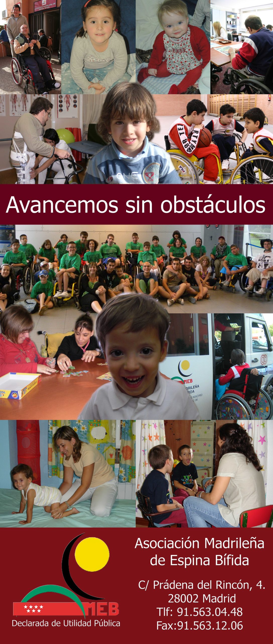 The Madrid Association of Spina Bifida (AMEB) was created in May 1976 to address the problems presented by the education and rehabilitation of children and young people affected by this disease. The main purpose of AMEB is to provide care for people with physical disabilities on risk situation of social exclusion. Also to provide support for people affected by Spina Bifida or Hydrocephalus, such as healthcare, educational assistance, or to improve their vocational training and professional integration, in order to make life easier for them and their families, so to defend the interests of its members.