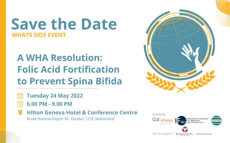 The International Federation for Spina Bifida and Hydrocephalus together with GAPSBiF and G4Alliance work together to promote WHA Resolution for Folic Acid Fortification for Spina Bifida.