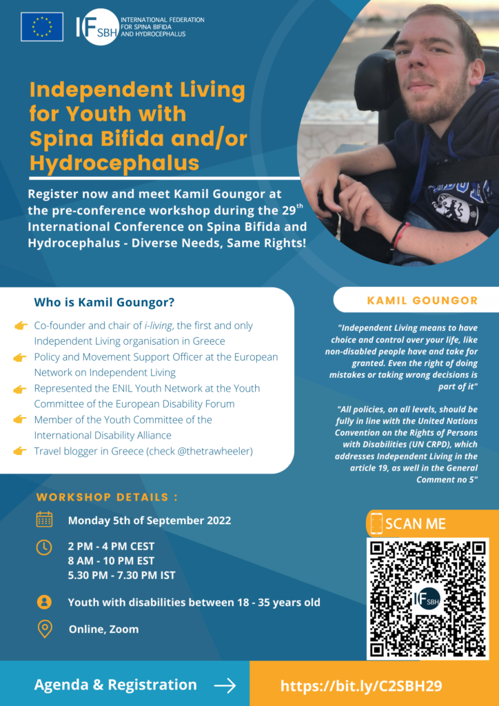 Following their requests, IF keeps facilitating further meetings with youth members to support and empower independent living for all youth with SBH. One of which is the pre-conference workshop for youth with SBH during the 29th International Conference on Spina Bifida and Hydrocephalus – Diverse Needs, Same Rights with the trainer: Kamil Goungor (policy and movement support officer at ENIL). This workshop will take place on September 5 2022 with the aims of providing the youth SBH community with more in depth knowledge of their rights to independent living and essential skills and tools to advocate for their rights to independent living.