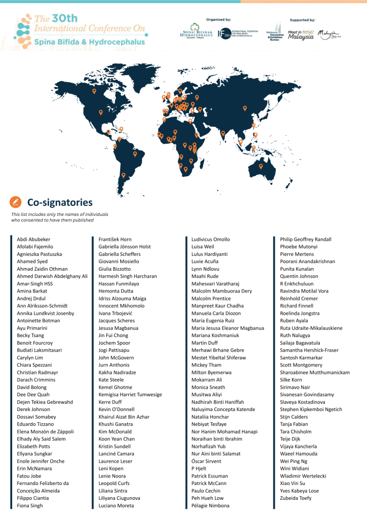 For the GDS25 IF commits to continuing its awareness-raising and advocacy efforts to ensure that all relevant stakeholders will be involved in pursuing the commitments outlined in the Kuala Lumpur Declaration, a historical document resulting from the 30th International Conference for Spina Bifida and Hydrocephalus. This event brought together experts, researchers, healthcare professionals, members of the SBH community, and their families to discuss solutions that can break down barriers and improve quality of life. Contributions for the Declaration were received from across the globe, representing a wide array of perspectives and shared experiences, culminating in the following commitments: