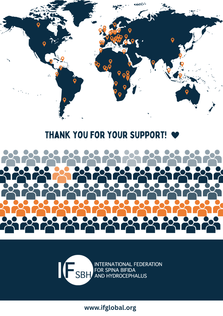 The International Federation for Spina Bifida and Hydrocephalus (IF) is committed to promoting and protecting the human rights of individuals with Spina Bifida and Hydrocephalus (SBH) in alignment with the UN Convention on the Rights of Persons with Disabilities (CRPD). Our mission is to improve their quality of life and reduce the prevalence of Neural Tube Defects (NTDs) and Hydrocephalus through primary prevention, awareness-raising, political advocacy, research, community building, and human rights education. Our commitments are specifically designed to enhance CRPD implementation and contribute to achieving Sustainable Development Goals (SDGs), particularly SDG 2 (ending malnutrition) and SDG 3 (ensuring health and well-being for all) and they focus on the necessity to adopt a human rights-based approach to the prevention of Neural Tube Defects (NTDs) and ensure continuous, coordinated, and inclusive multidisciplinary care for individuals living with SBH throughout all stages of life, from childhood to adulthood.
