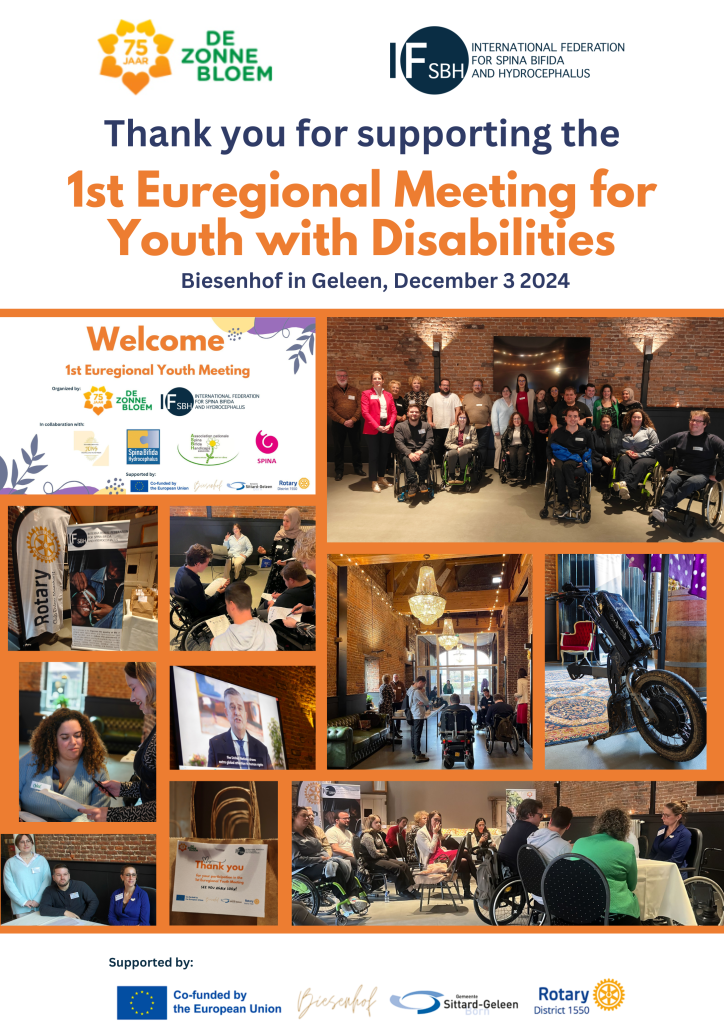 Human rights and equal opportunities for people with disabilities are not self-evident. Attention to this subject is of great importance. The United Nations underlined this by calling for worldwide attention for the subject on December 3. Reason for the youth group of the Zonnebloem Westerlijke Mijnstreek of the Netherlands and the youth group of the International Federation for Spina Bifida and Hydrocephalus, Brussels Belgium together with the IF youth members from the Vlaamse Vereniging voor Spina Bifida en Hydrocephalus vzw (VSH) Belgium, Association Nationale Spina Bifida et Handicaps Associés (ASBH) France, and Fundacja “Spina” Poland, to join forces and organize this first Euregional meeting by and for young people with a physical disability on December 3 2024.