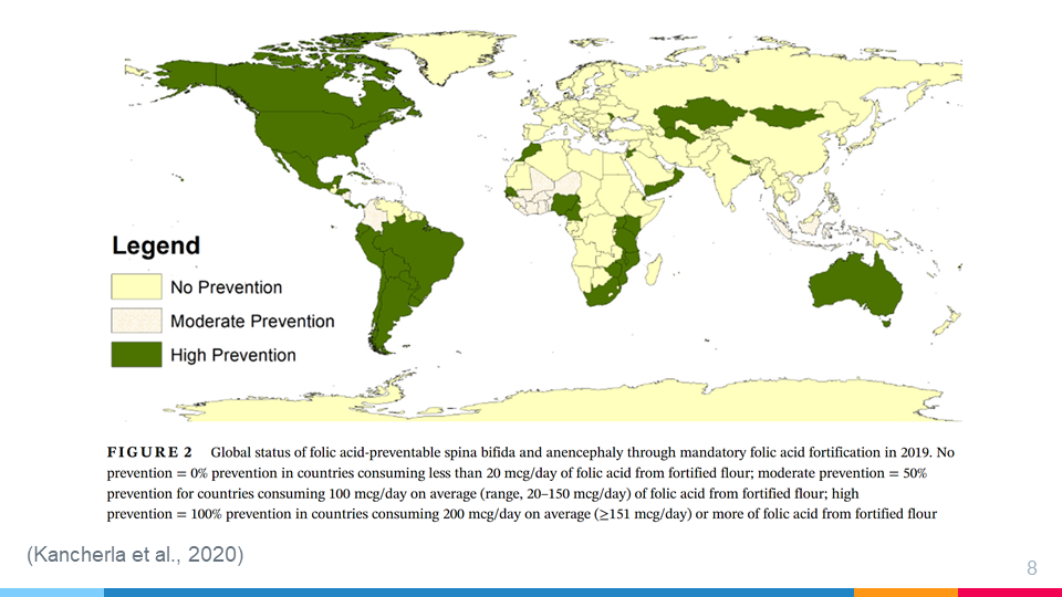 The opportunities discussed today around folic acid fortification only apply to the prevention of Spina Bifida F. The folic acid deficiencies vary from country to country depending on the scale of fortification. This can be done by