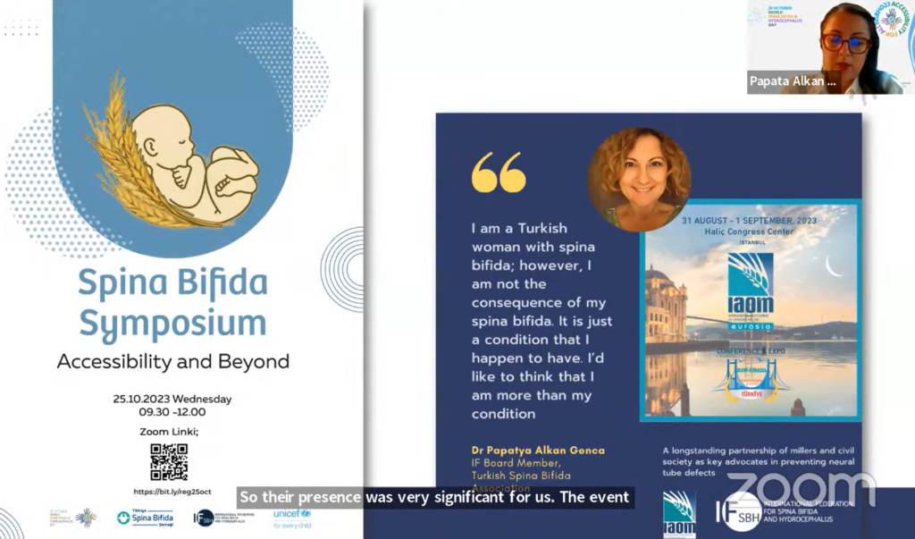 In her talk, Papatya highlighted the symposium on accessibility organised with UNICEF Turkey. In this symposium, different stakeholders were gathered such as the Ministry of Family and Social Affairs, the Ministry of Agriculture, NGOs, members from her own organisation and Dr Sylvia Roozen – IF Secretary General.